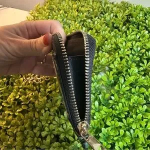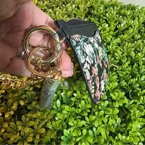 Elegant new without tags floral black wallet with a stylish gold wrist chain and details by Nanette Lepore. Wallet has a gold colored zipper closure and tiny pocket in the front. Features key holder and hassle. Perfect for keeping your essentials organized and secure.