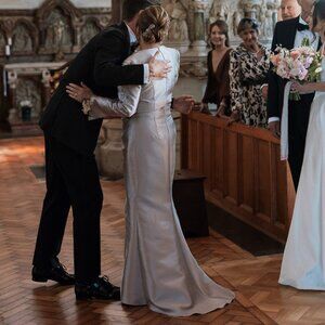 Sold out online. Item: SIZE 12 is new with tags- PURCHASED TWO SIZES FOR MOTHER OF THE BRIDE DRESS and selling the size 12. Dress was stunning, so many compliments and photographed well. Elegant, classy MOB dress!