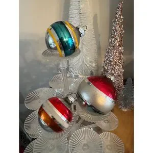3 striped vintage Christmas ornaments, glass Christmas balls