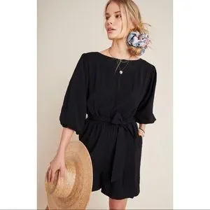 Anthropologie Francesca Balloon Sleeve Black Short Romper