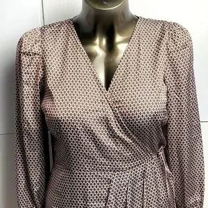 Abercrombie & Fitch Pleated Front Wrap Curve Front Long Sleeve Dress Sz Large P