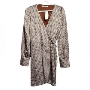 NWT Abercrombie & Fitch Pleated Front Wrap Curve Front Puffed Long Sleeve Dress Size Large Petite