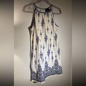 Just Taylor Blue & Ivory Embroidered Lined Cotton Shift Dress Size 4
