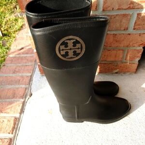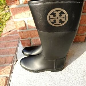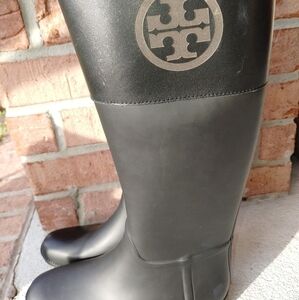 NEW TORY BURCH CLASSIC RUBBER RAIN/WINTER BOOTS W/ LEATHER AT TOP-RARE SIZE 11M