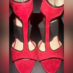 Karl Lagerfeld Paris T Strap Rosalie Red Suede Heels Size 8.5