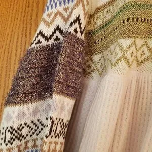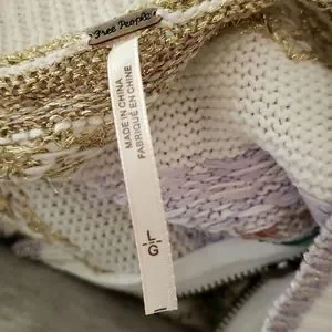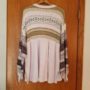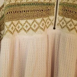 🤩NWT Oversized Free People Half-Zip Sweater with Metallic Thread Design Sz L