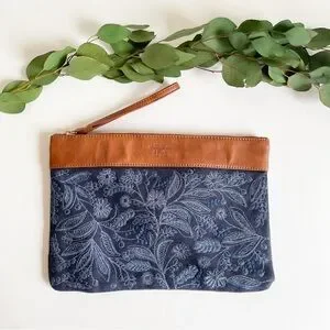 NWOT Abercrombie & Fitch Blue / Tan Faux Leather Embroidered Clutch Bag