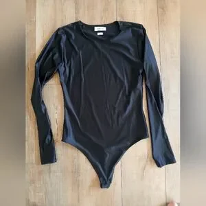 NWOT Babaton Satinette Crew Longsleeve Bodysuit Women's Size M in Black