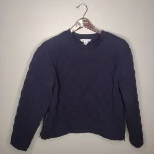 Athleta Retroplush Quilted Crewneck Sweatshirt Top Medium Navy Zip Sides A19