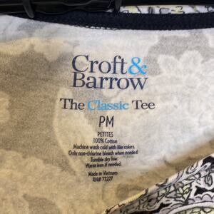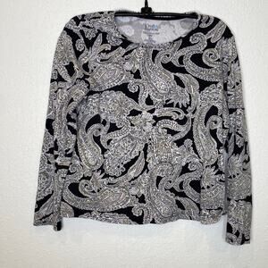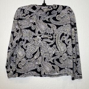 Croft & Barrow The Classic T Long Sleeve Paisley Cropped Round Neck Shirt Sz PM