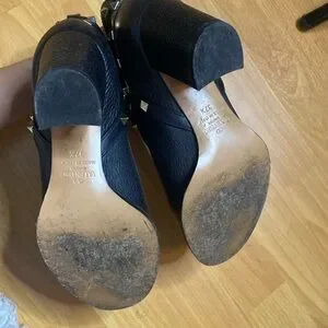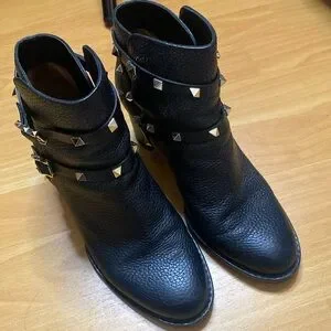 Valentino Garavani Rockstud Buckle-Wrap Ankle Booties, Black, size 37.5 or 7 / 7.5