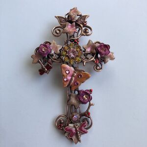 KIRKS FOLLY Mother Earth Pink Heaven Cross Pin Brooch Enhancer