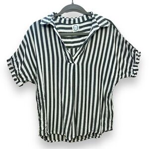 Blue Rain Grey and White striped V neck Blouse in a size small