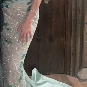 Beautiful custom made Tabja gown sage green with side skirt size4-6