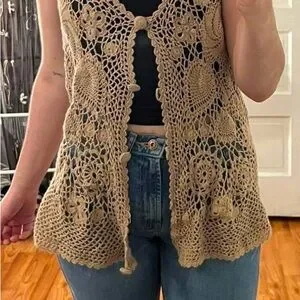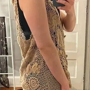 I bought it and its to big for me , really nice crochet vest , Brown/beige/Tan not sure how to describe the color