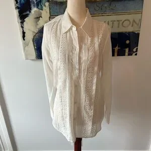 Nili Loton Ivory Cotton Eyelet Button Down made of Sheer Soft Cotton