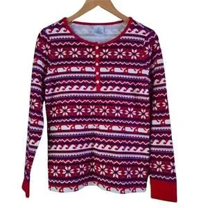 Vineyard Vines Womens Holiday Top, Long Sleeve, Holiday Design, 1/2 Down Button Front, Scoop Neck, Jersey Type Fabric, Size XS, Really Nice Condition,