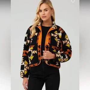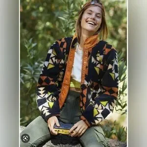 FREE PEOPLE-Rocky Ridge Fleece Aztec Jacket Night Sky SIZE EXTRA SMALL
