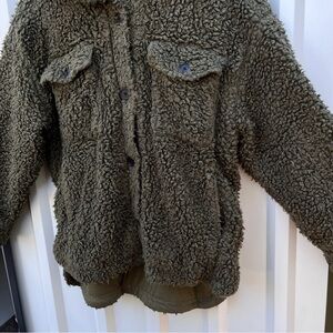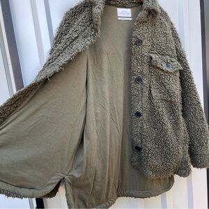 Urban Outfitters Palmer Sherpa Shirt Jacket Sweater Green Womens Small S