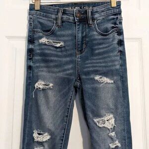 AEO High Rise Jeggings Distressed Denim Skinny Raw