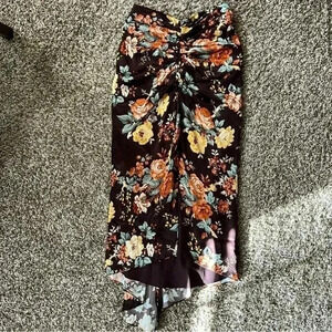 Elevate your wardrobe with this stunning Veronica Beard Pixie Floral Silk Midi Skirt. The A-line style and asymmetric hemline with a slit add a modern twist to the classic floral pattern, making it perfect for any occasion from party/cocktail to casual. The skirt is made of high-quality silk blend fabric with rouched accents, making it comfortable and stylish.
