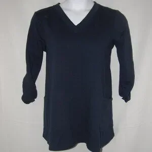 SUSAN GRAVER Navy Blue Sz Large Lightweight Tunic Soft Sweatshirt Front Pockets