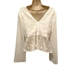 Renvy White Crop Blouse Boho Bohemian Star Details Size Small