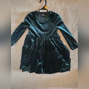 Green long-sleeved ruffled velvet dress by Lilt. Perfect for the holidays and family pictures. Only worn once. Size 3T. Great quality in a smoke-free home.