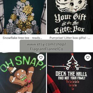 I make shirts from thrifted tees and flannels. More than 300 tees to pick from, I try not to pre-flannel a lot of them so I can make to suit your size. This one can be customized to your size ADULT MEDIUM and over (due to size of tee.) Great gifts, something for everyone. (Not just holidays: care bears, ninja turtles, feminist ideals, funny food items and more!)