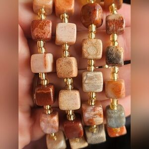 Stunning Genuine Coral Jade Cube Bead Bracelet Fossil Coral