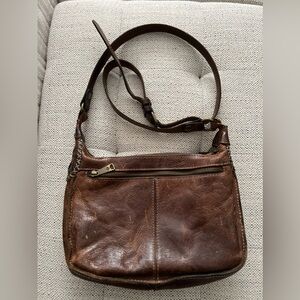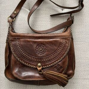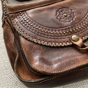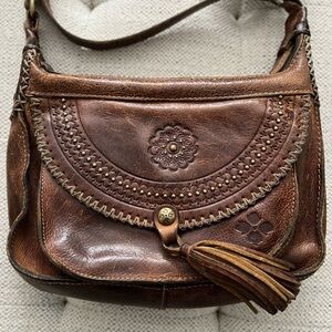 Patricia Nash Tooled Leather Brown Adjustable Beaumont Flap Boho Crossbody Bag