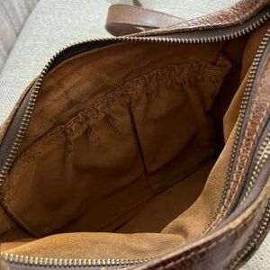 Patricia Nash bags are so well made. The leather is thick, soft and durable. The prettiest brown. Hints of light, hints of dark. Zippers are top notch. Doesn’t feel like they’ll ever give out. This bag is preloved so normal wear that adds some personality imo (: