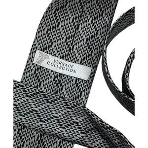 VERSACE COLLECTION Men's Silk Tie LUXURY Black Silver Geometric Logo W:2.8" EUC