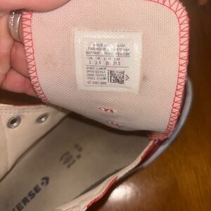 Youth size 3 Converse. I washed them up as best as I could. Still in pretty good condition.