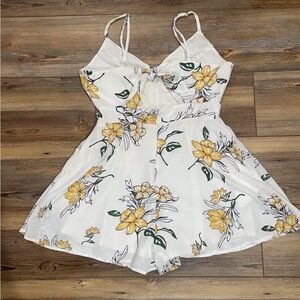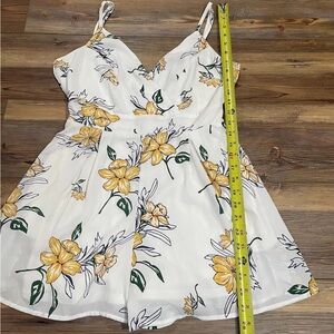New Sienna Sky adjustable spaghetti strap White Yellow Floral Shorts Romper Size Medium Open Bow Back Lined