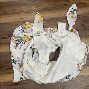 NEW Sienna Sky White Yellow Floral Shorts Romper Medium Back Tie Open Summer
