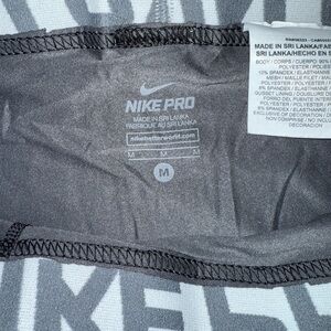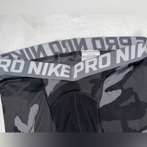 Dominate the game in these Nike Pro 3/4 black camo tights. Lightweight, bold, and featuring large Nike logos on both legs to show who you represent. Perfect for powering through any workout or game day. 💪 #NikePro #CamoStyle
