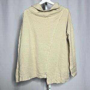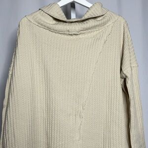 Free People Waffle Knit Cowl Neck Cream Sweater — S