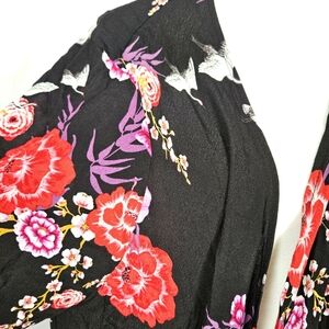 Torrid Floral & Crane Print Crepe Fringe Kimono