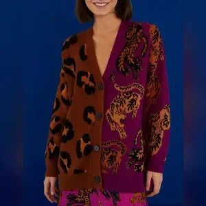 Farm Rio Mixed Wild Leopards Cardigan In Multi