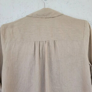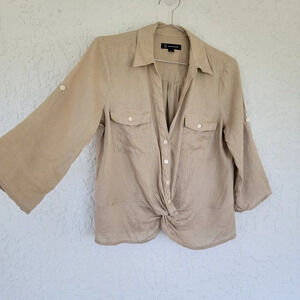INC Linen Buttondown Cropped Top Womens Size S Tan Brown Twisted Front