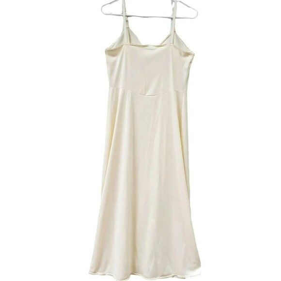 Vintage Full Slip Nightgown Lingerie Slit Sexy Lace Beige Adjustable Lorraine 34