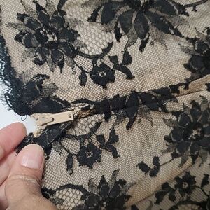 Black Oscar de la Renta Lace Blouse with Three-Quarter Sleeve and Bateau Neckline. Concealed Zip Closure at Back. Tag says size 10 but fits like a small.