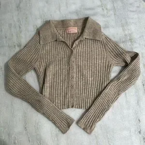 Oatmeal natural heathered collared button up ribbed sweater. Size S. Cropped length and fitted. Worn a few times.