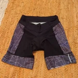 Women's EUC like new She Beest Cycling Shorts in black with purple and pink geometric design. No slip grip on hemline, fully padded. Bundle with my MTB shorts and save!