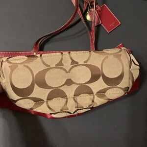 Authentic COACH Signature Tote Bag. Brown/Burgundy. Leather Trim.