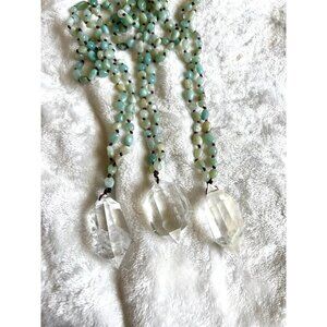 DT Power Quartz + Aquamarine Mala Pendant Necklace