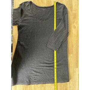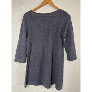 Eileen Fisher 100% Linen Top Sz PM Navy Blue Tunic Lagenlook Minimal Beaded.