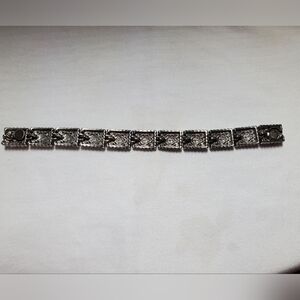 Vintage Silver Bracelet With Black Triangular Accents
