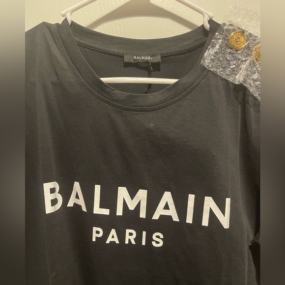 Balmain new women’s T-shirt black with gold buttons on shoulder. Size XL
